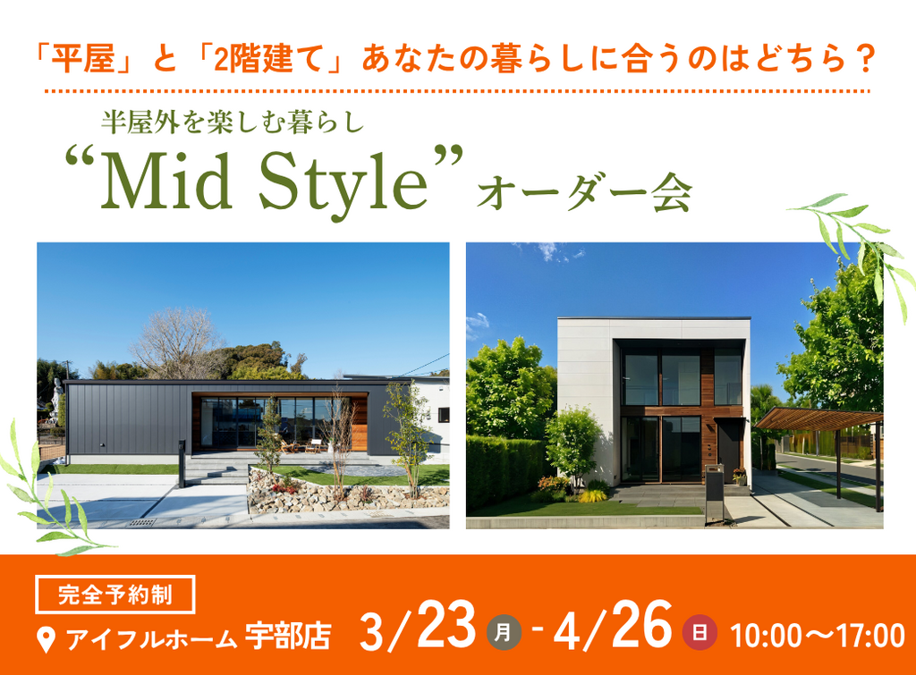 | タイトル | 【宇部店】平屋と2階建てあなたの暮らしに合うのはどちら?Mid Styleオーダー会 |