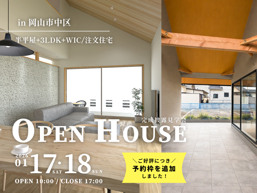 このたび、岡山県岡山市中区にて、1月17日(土)〜1月18日(日)の2日間、「家事ラク動線を追求した、ストレスフリーな住まい。」をコンセプトとした、新築デザイン住宅の完成見学会を開催することになりました。