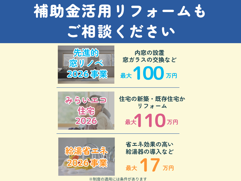 最大150万円の補助で、子育て世代、若者夫婦世帯の住宅新築・購入や中古住宅のリフォームを応援
