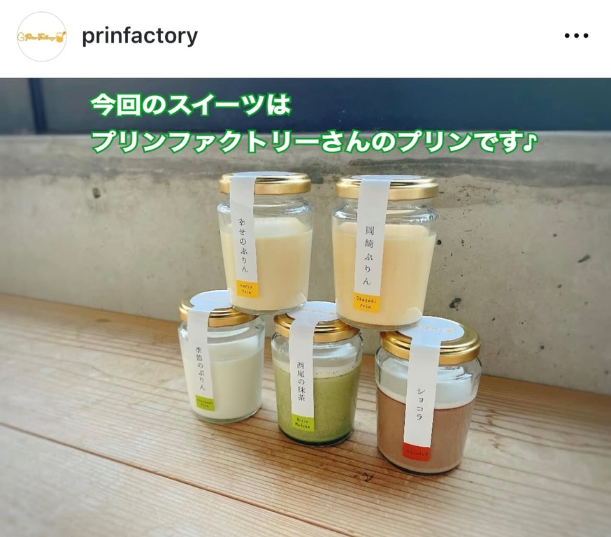 今回のスイーツは「プリンファクトリー」のプリンです♪お楽しみに!