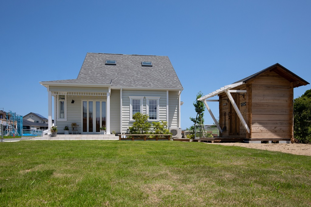 「ウッドデッキとスクリーンドポーチがつなぐ、開放感あふれるアーリーアメリカンの家」