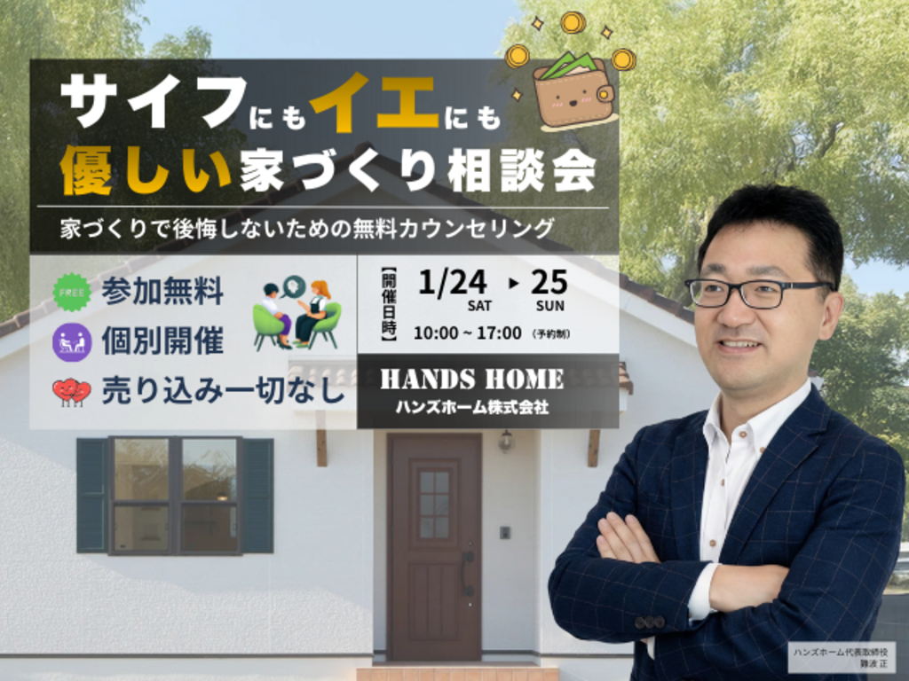 | タイトル | サイフにもイエにも優しい家づくり相談会1/24-25 |