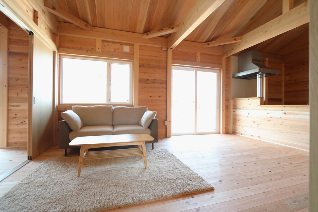 スギの無垢材だけでお家をつくるので、シックハックの心配もなく、有害な廃棄物も出さないため、何年も安心して過ごせるお家です。