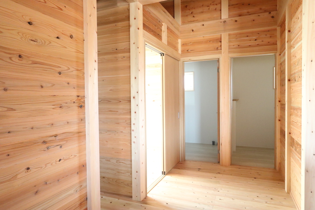 構造そのものに無垢材を活かした板倉工法を採用しています。