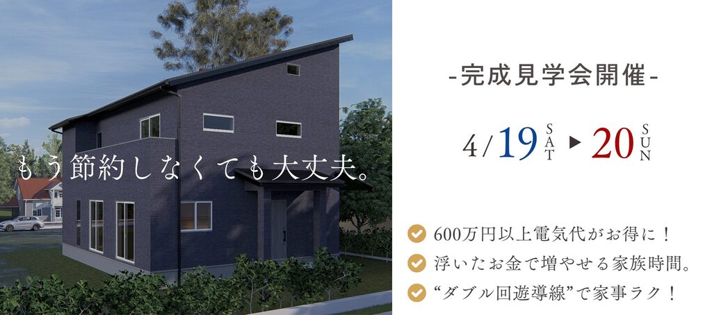 今回は4月19日(土)、20日(日)に開催する完成見学会についてご紹介します。