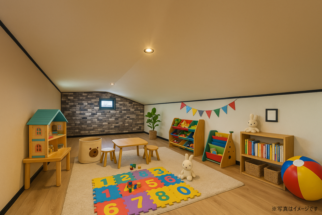 今は遊び場、将来は収納としてご活用いただける広い小屋裏も必見です。