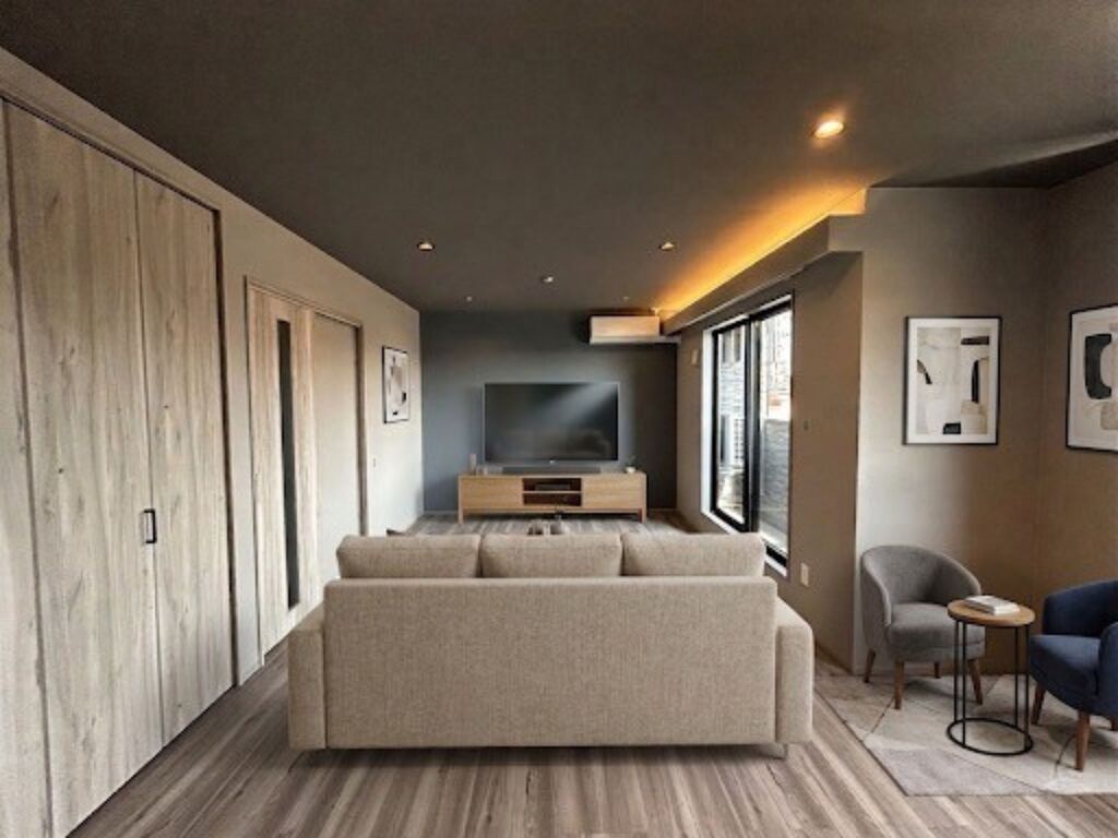 ・間接照明やダウンライト、クロスも落ち着いたおしゃれな雰囲気に統一