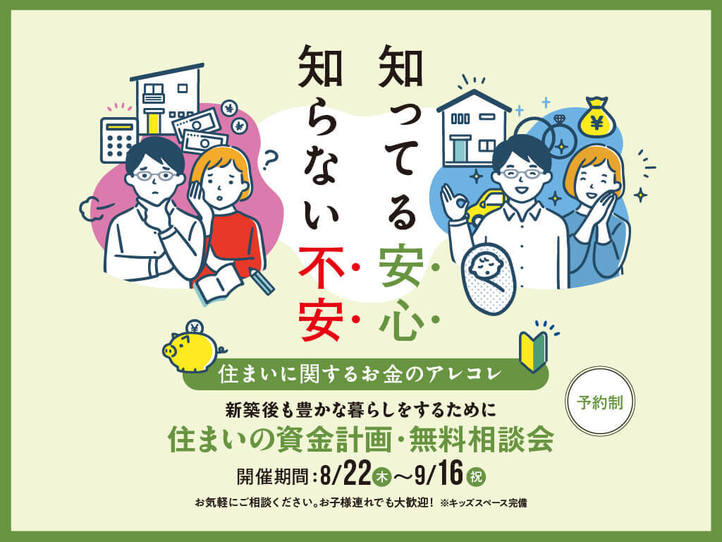【住まいの資金計画・無料相談会】~新築後も豊かな暮らしをするために★予約制★