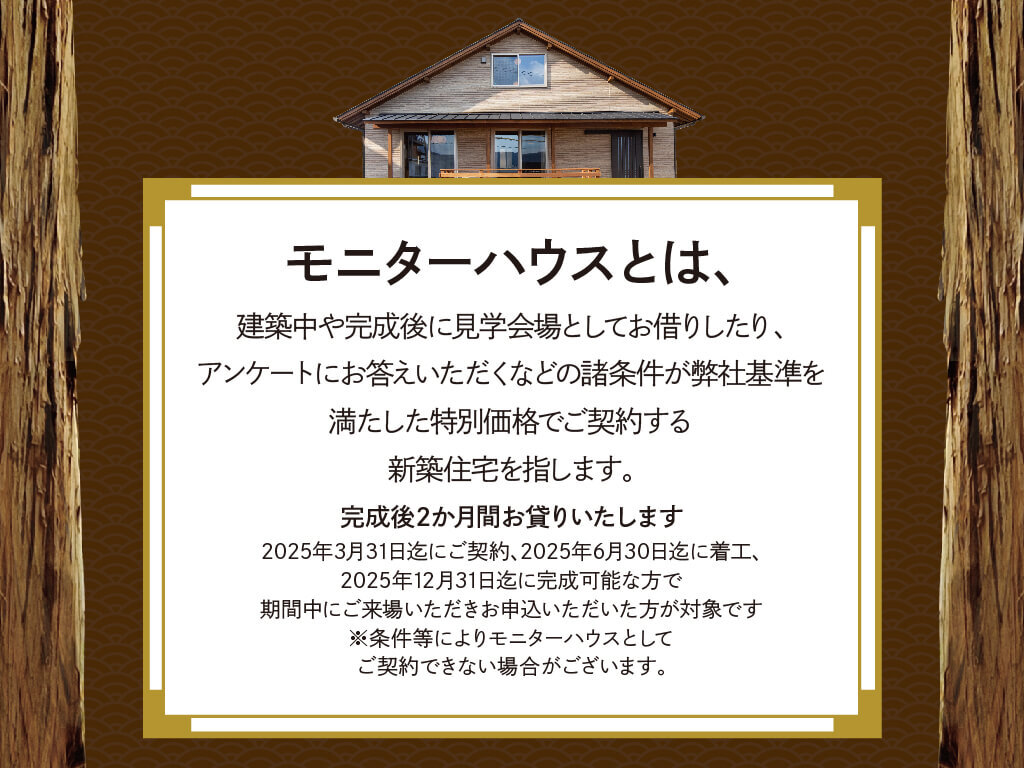 タイトル 【新春感謝祭】ほっとする木の家★「モニターハウス新築キャンペーン」