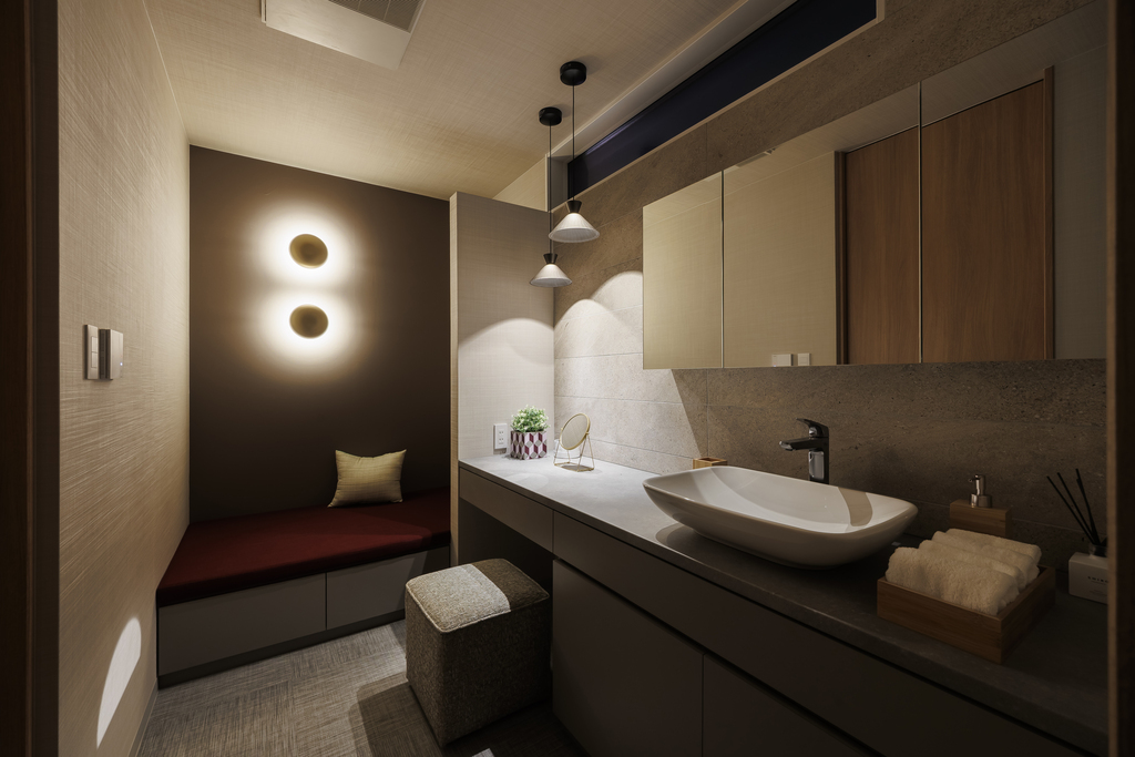 空間全体を灯りで包み込む間接照明、散りばめられたパーソナルな空間など