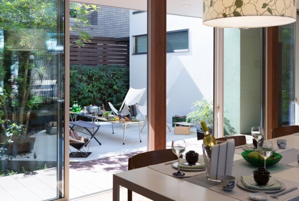 リビングとテラスを行き来しながらBBQを自由に楽しめる