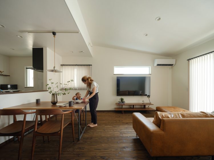 室内は、丸和建設が大切にしている杉の無垢の床材や空気を綺麗にする漆喰をふんだんに使用した、木の香りが落ち着く空間をご体感いただきながら、施主様のライフスタイルを踏まえ、日々の家事など生活しやすい動線設計をご見学いただけます。