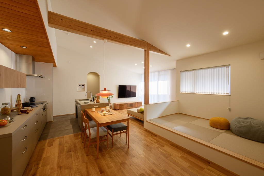 ・リビングに隣接した畳スペースは、遊び場、お昼寝、勉強など多用途に活躍