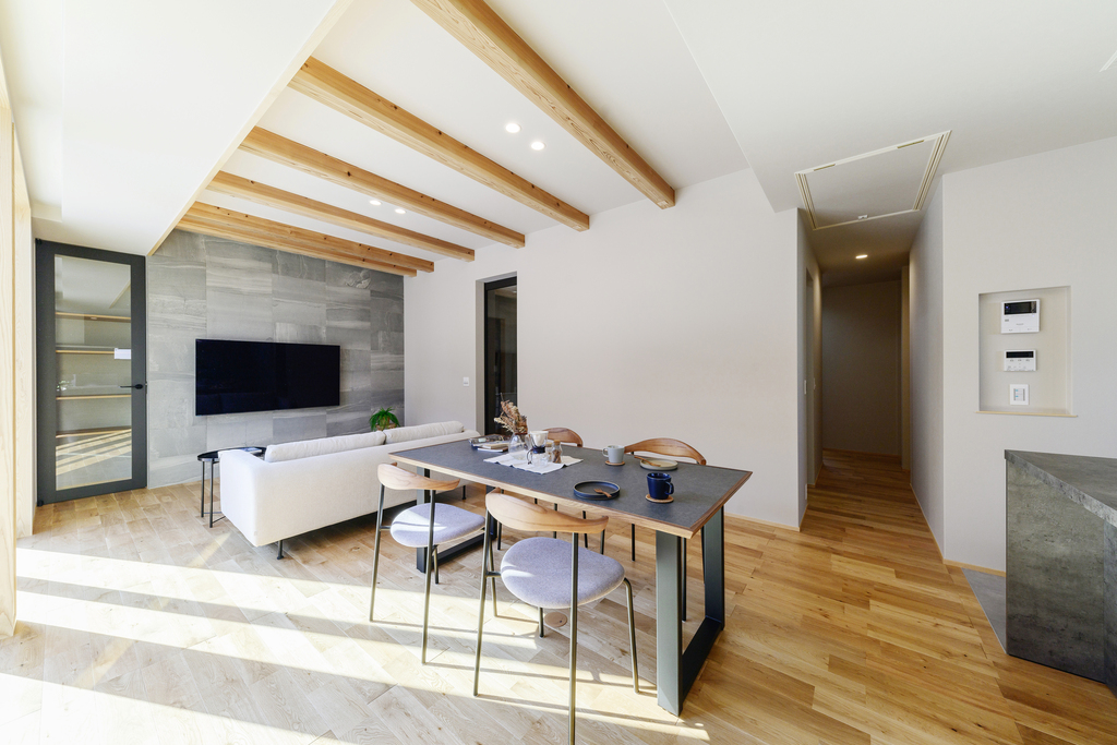 あらわし梁により、木の温もりも感じられるリラックスできる空間となりました。