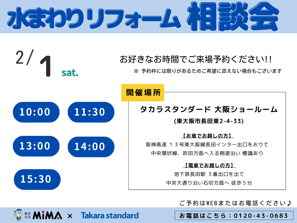 | タイトル | 水まわりリフォーム相談会 in タカラスタンダード大阪ショールーム リフォーム |