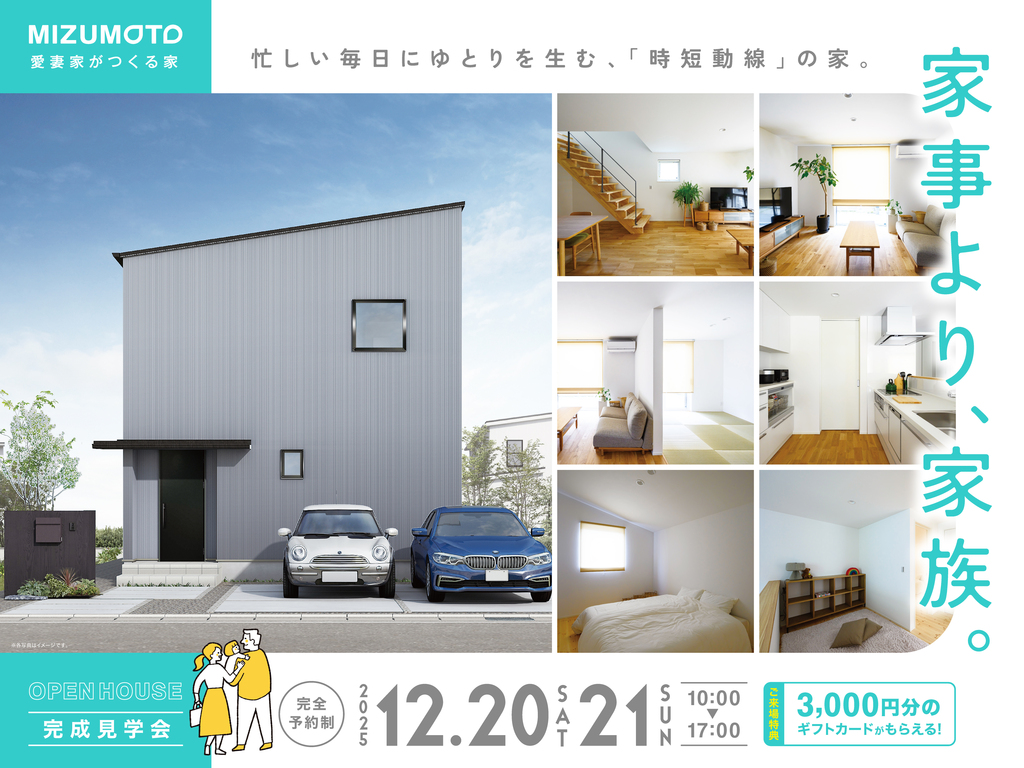 | タイトル | 【2日間限定】家事より家族。忙しい毎日にゆとりを生む、「時短動線」の家。【完成見学会】 |