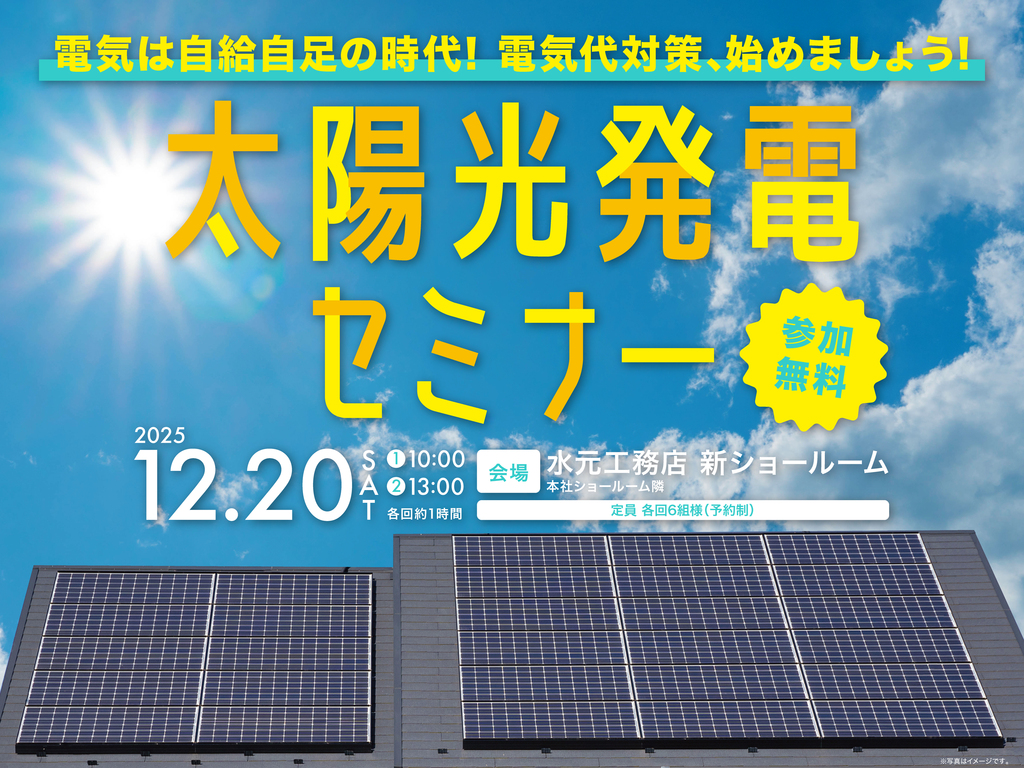 | タイトル | 電気は自給自足の時代!太陽光発電セミナーを開催します【無料】 |