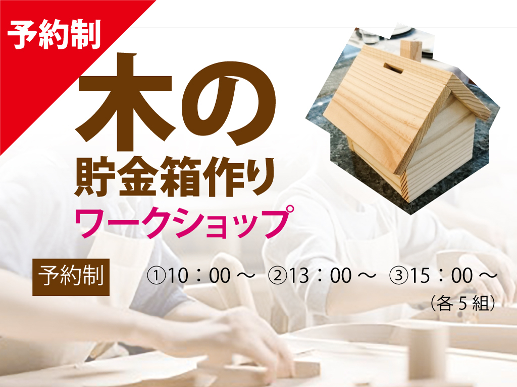 【木の貯金箱ワークショップ】を予約制で開催します。
