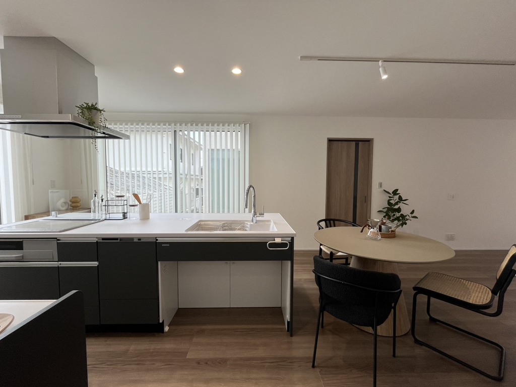今回の建売住宅のコンセプトは「コンパクトリッチを叶える平屋」。玄関ドアを開くと開放的なオープンリビングが広がり、視線がリビングの奥まで抜けるため実際の坪数以上の広さを感じます。(オープンリビングとはここでは玄関からリビングの間に仕切りがない空間のことをいいます。)家族の帰宅がすぐにわかる安心の間取り。自然と家族間のコミュニケーションも増えそうです。お子様が小さい間は「ただいま」の声がすぐに聞こえるのがうれしいですね♪