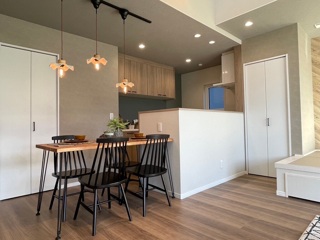 また、横並びのキッチンダイニングは配膳、下膳が楽に行え、小さなお子様のお手伝い意欲も上がります。