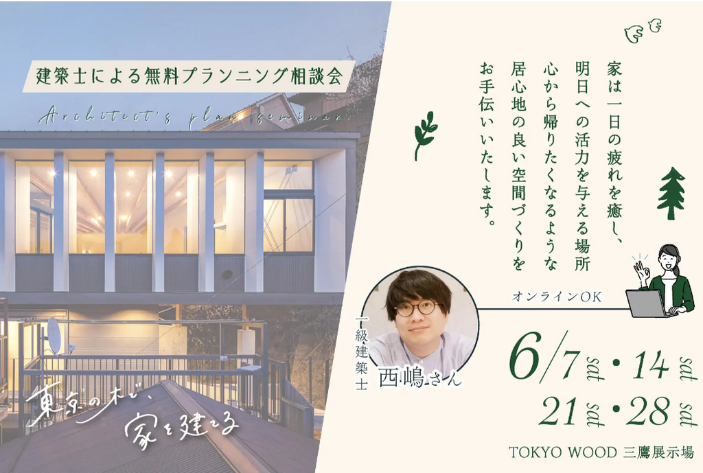 | タイトル | 設計相談会【東京都三鷹市】建築士による無料プランニング相談会 “暮らしの風景をデザインする” |