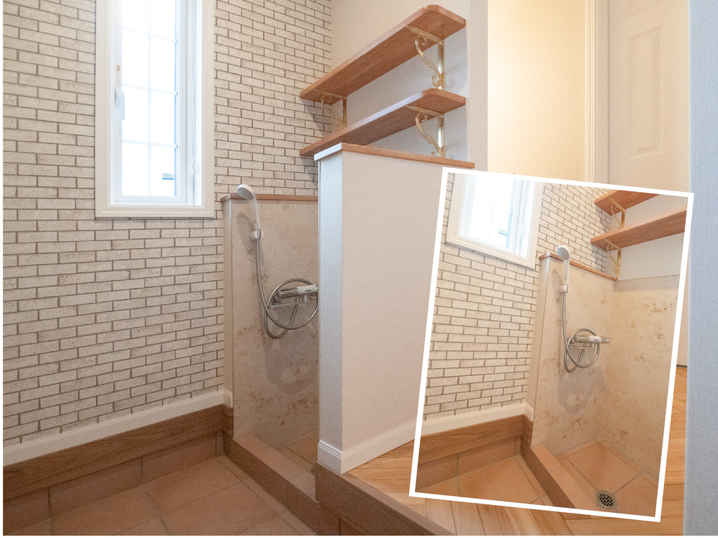 ☑️シューズクローク内「ペット用手洗い場」: 帰宅後、家に入る前にサッと足洗いができ、お部屋を清潔に保てます。