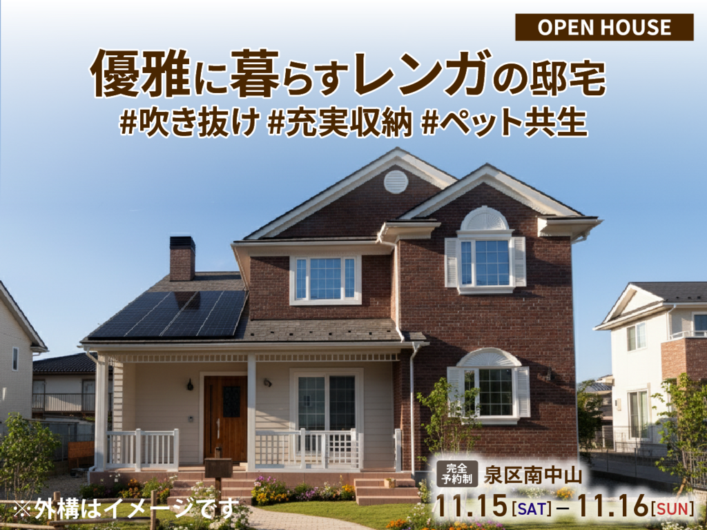 クラシックなレンガ外観が優雅な期間限定モデルハウスが完成しました。