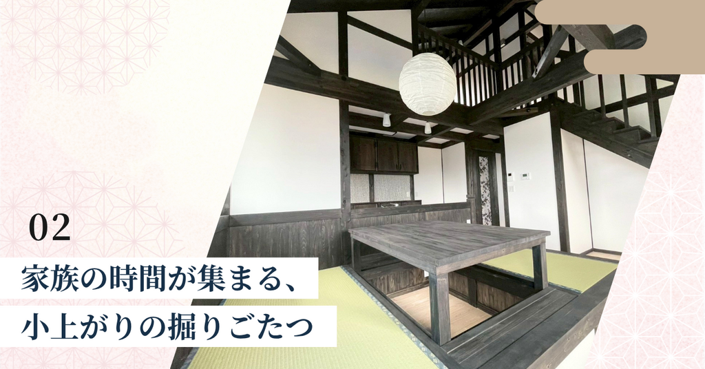 リビングに設けた小上がりの掘りごたつは、