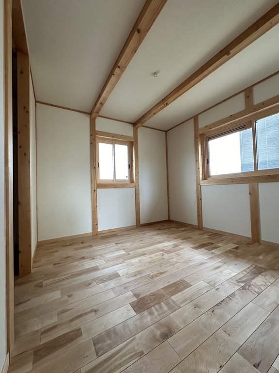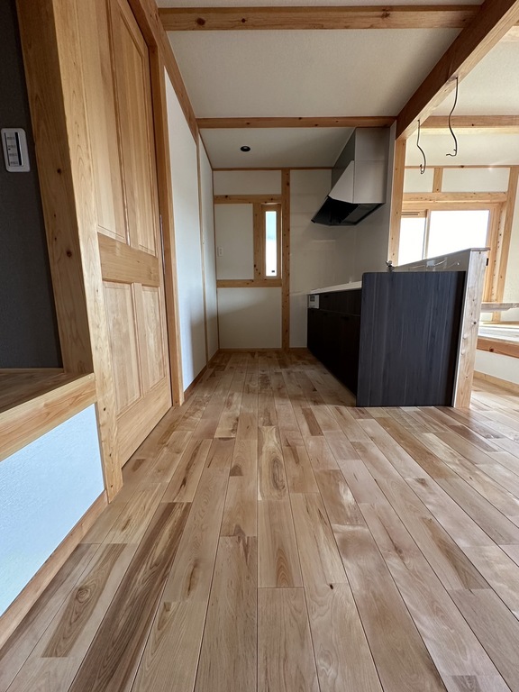 国産ヒノキの柱、カバの無垢材の自然を感じる木の家を