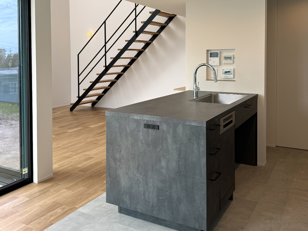 グラフテクト製のモダンな仕上がりのキッチンや、おしゃれなオリジナル造作洗面台など、暮らしを豊かにする工夫が満載です!
