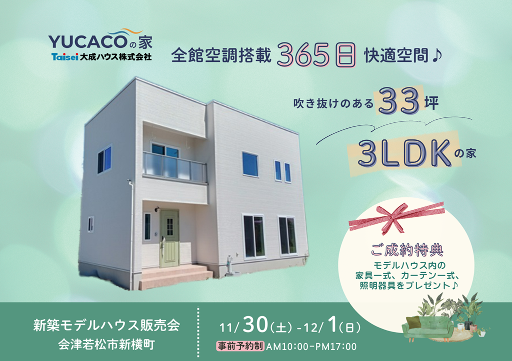 | タイトル | 【会津若松市新横町】全館空調搭載モデルハウス 販売会開催♪ |