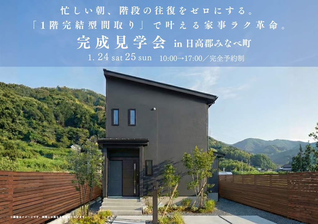 | タイトル | ≪みなべ町≫忙しい朝もう階段を走らなくていい 「1階完結型間取り」で叶える家事ラク革命~完成見学会~ |