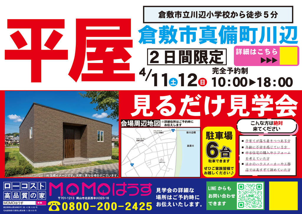 ※見学会は、倉敷市真備町川辺でご予約時に詳細住所をお伝えいたします