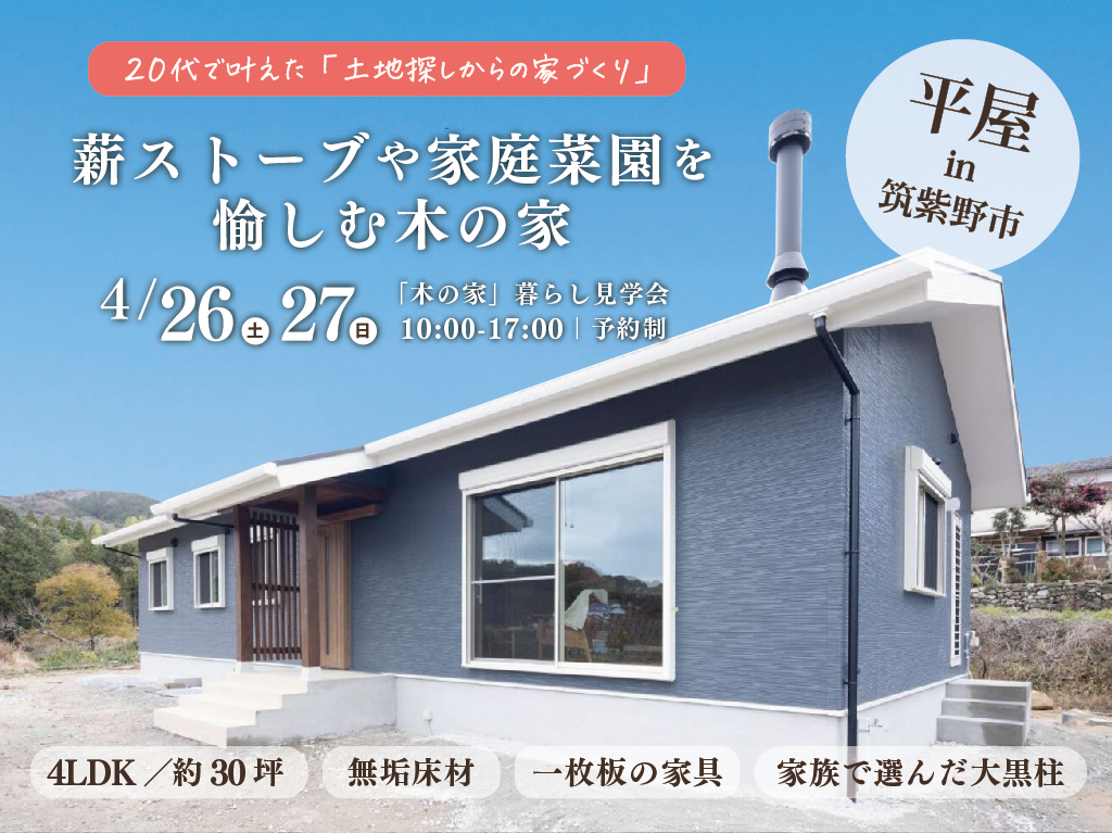 | タイトル | 「平屋の木の家」暮らし見学会/福岡県筑紫野市 |