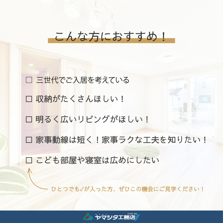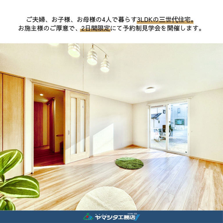 家事動線にこだわった、コンパクト3世代住宅、お気軽にご来場・見学くださいませ!