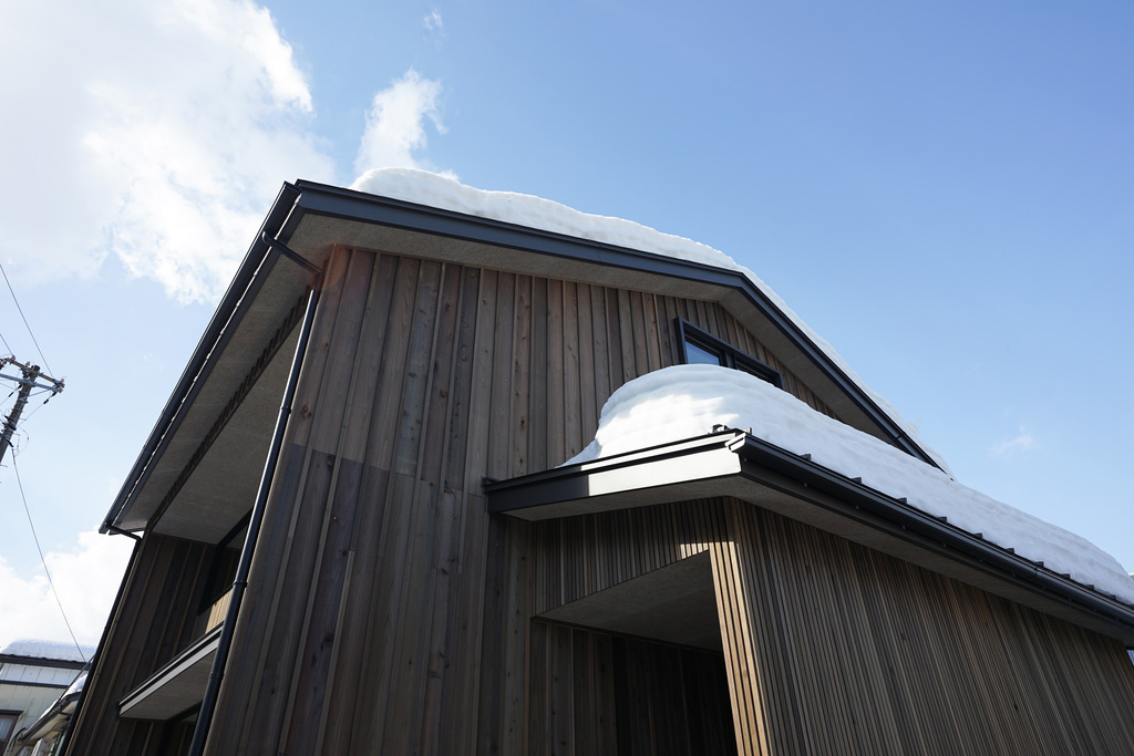 豪雪地での暮らしを守る勾配のある三角屋根に、夏の日射をコントロールする深い軒。