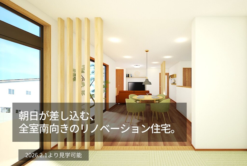 朝日が差し込む、全室南向きのリノベーション住宅。